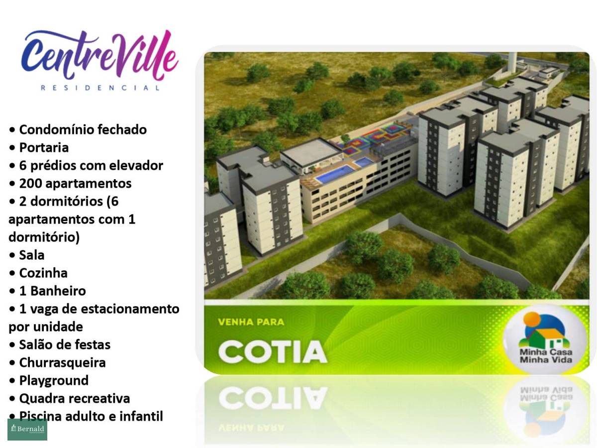 Em construção Apartamento à venda em Cotia, Parque Monjolo, com 2 quartos, 45m² AP0342 - GER MONTREAL Vende Apartamento R$ 249.346,90 Parque Monjolo, Cotia 02 00 m² 00 Detalhes