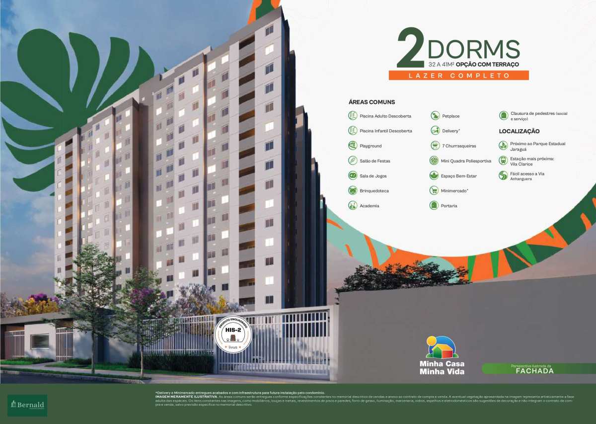 Pronto para morar Aceita financiamento Apartamento à venda em São Paulo, Jaraguá, com 2 quartos, 32m² AP0083 TENDA VIVA CITY JARAGUÁ Vende Apartamento R$ 245.000,00 Jaraguá, São Paulo 02 01 32 m² 00 Detalhes